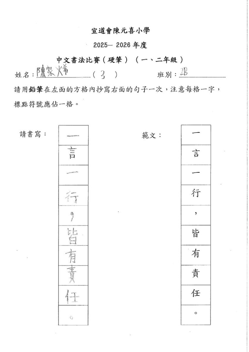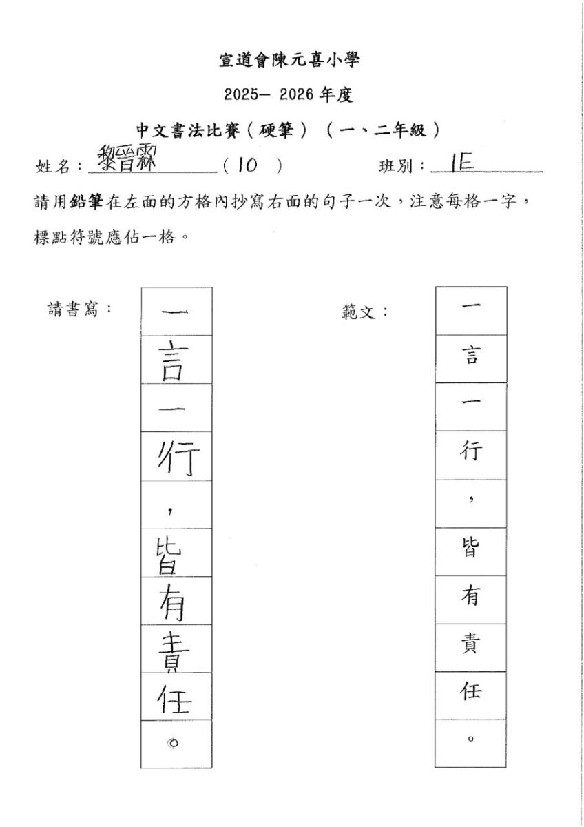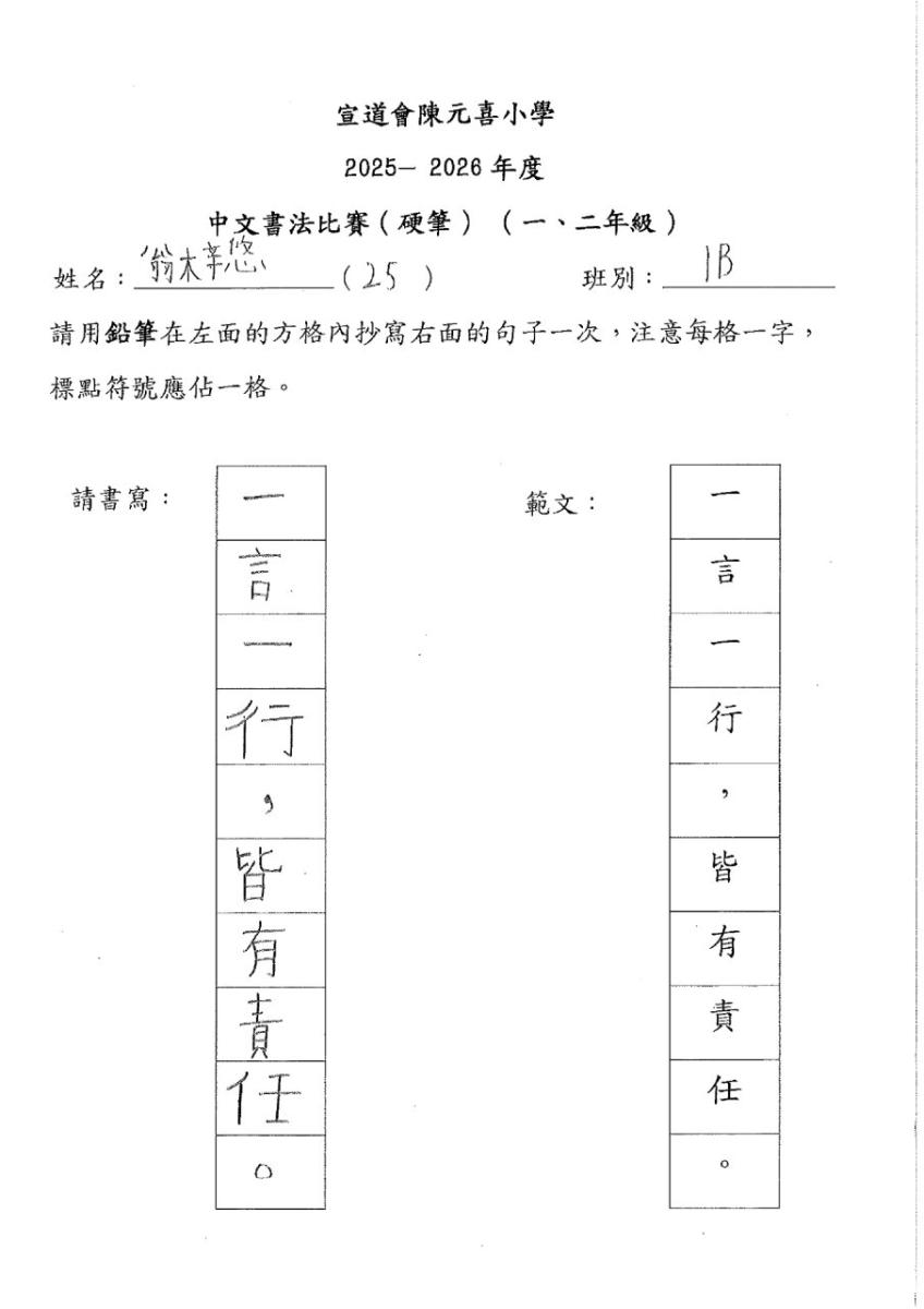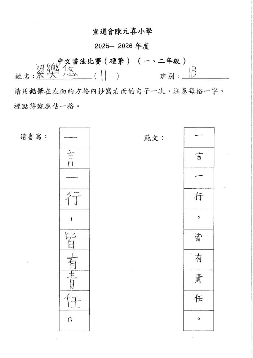 | 一年級 | 季軍 | 1B | 翁梓悠 | 下載 |