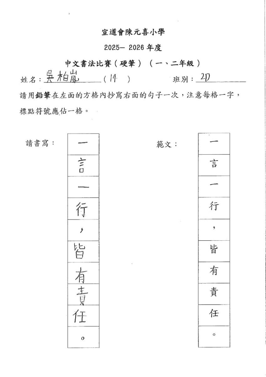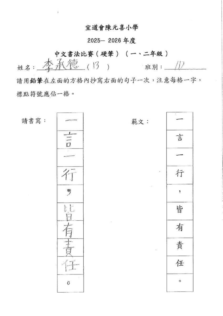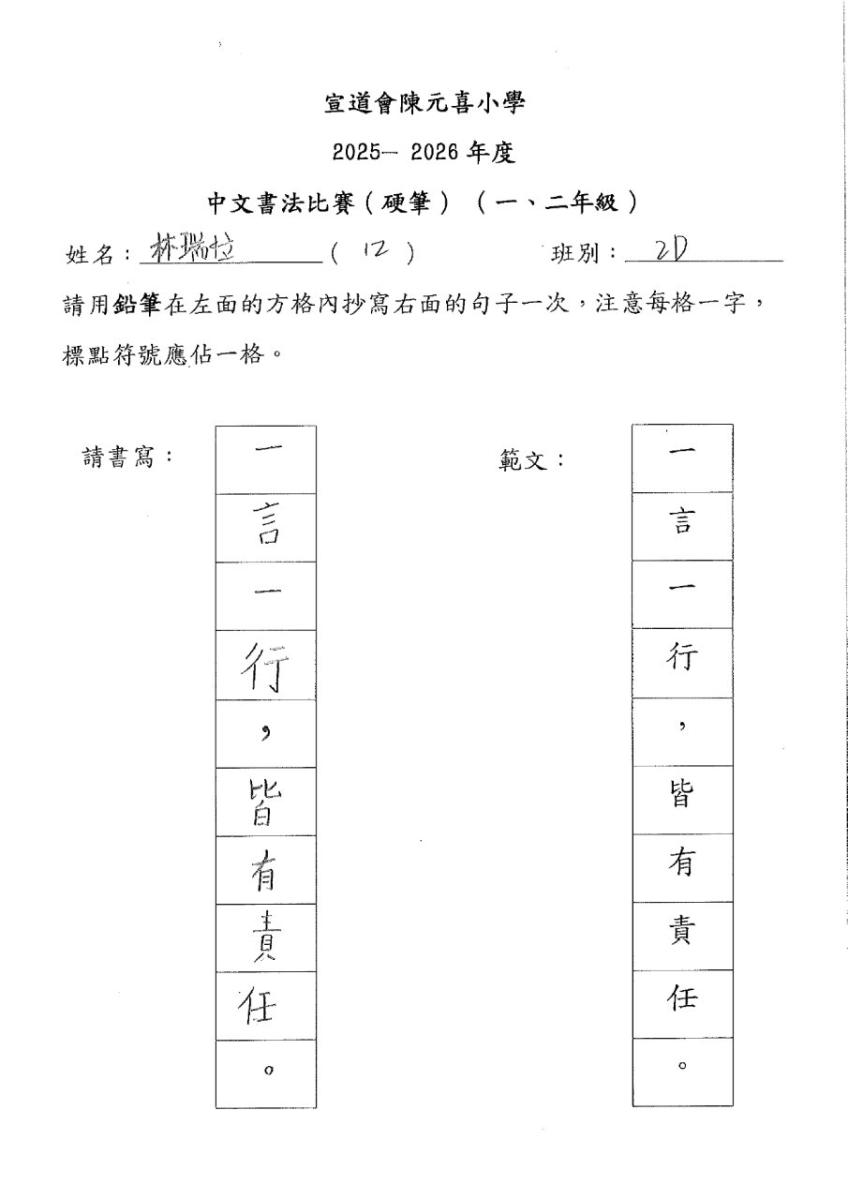 | 四年級 | 亞軍 | 4D | 熊鈺垚 | 下載 |
