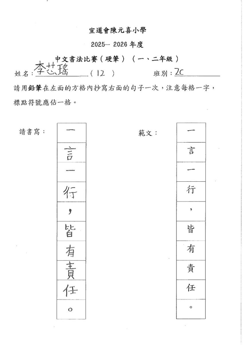 | 二年級 | 冠軍 | 2C | 李芯瑤 | 下載 |